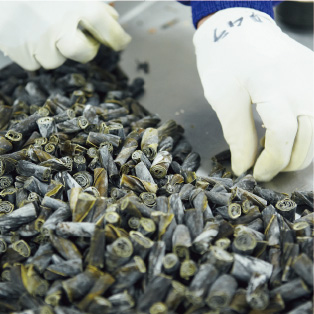 While touring the factory, I came across a process where shiny Pacific saury were being packed into cans. The neatly prepped fresh saury were sliced into pieces about 3cm long and beautifully arranged inside the round cans, resembling the petals of a chrysanthemum flower. “Those are saury that can be eaten as sashimi,” Mr. Ogata explained. Interestingly, this is the hidden hit product of Kesennuma Hotate Co., Ltd., called “Seasoned Saury.” The excitement experienced when eating this canned product is beyond words.
